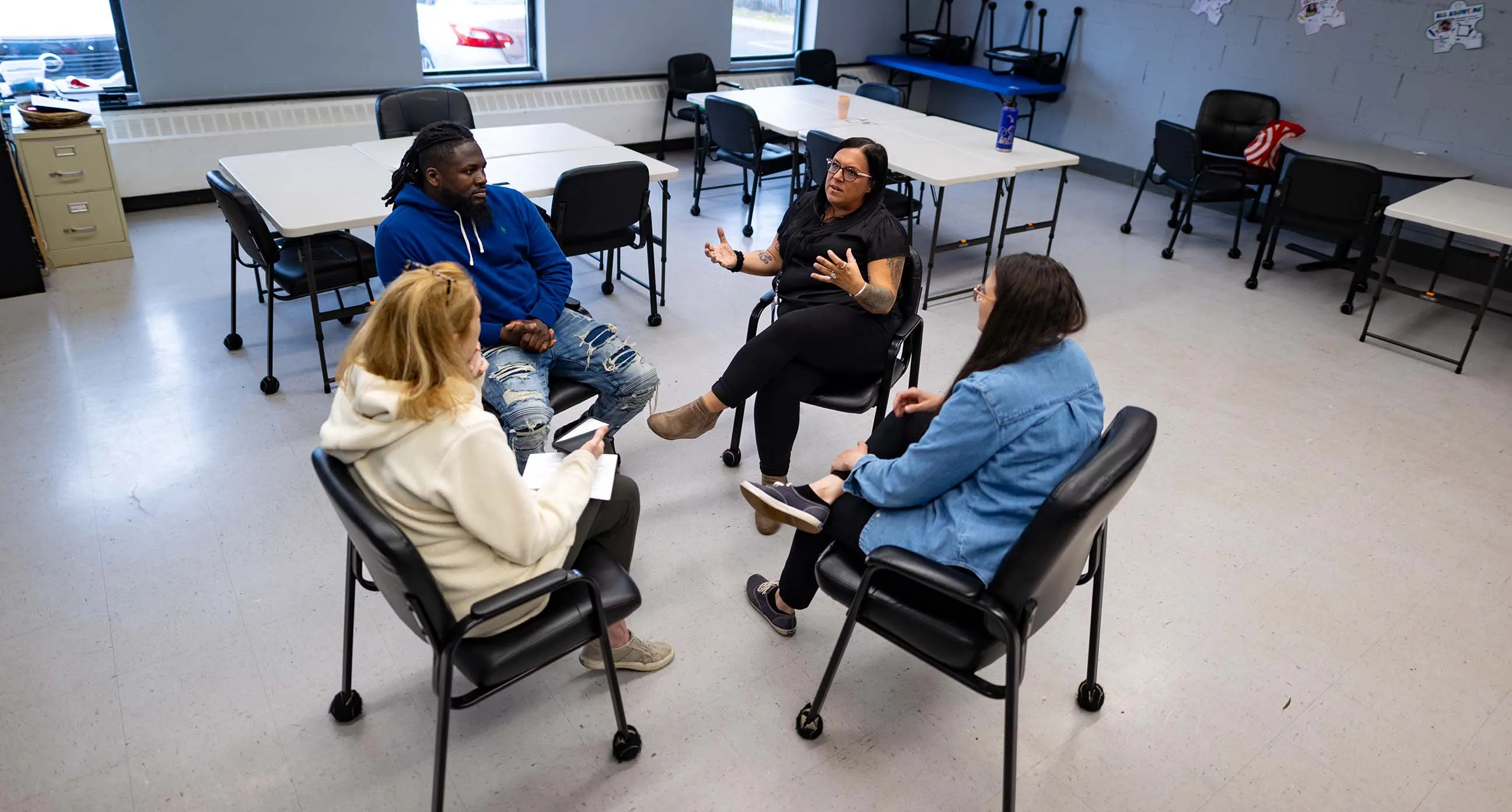 (Mary) “It’s tough but I have so much fun throughout the day. I laugh so much. You do. You get to see the true essence of everybody, staff, and individuals alike. You can't be in this field and you definitely can’t work in this building - In our clinical program - if you don't love what you do and you don't truly want to help make change.”