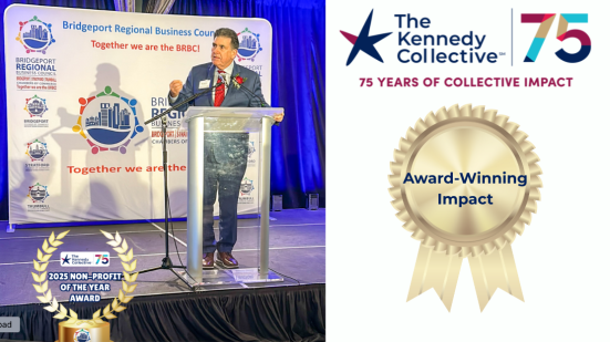 The Kennedy Collective was honored this December with two distinguished awards celebrating our leadership and impact across the region. On December 4, we received the Non-Profit Leadership Award from the Bridgeport Regional Business Council at their annual dinner gala. Just days later, on December 12, the Greater Valley Chamber of Commerce presented us with their Milestone Award, recognizing TKC’s 75 years of service, inclusion, and community partnership.